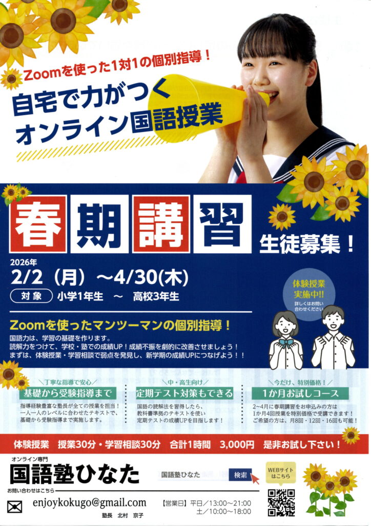 国語塾ひなたが、学年を越えて学びの土台づくりをお手伝いします。