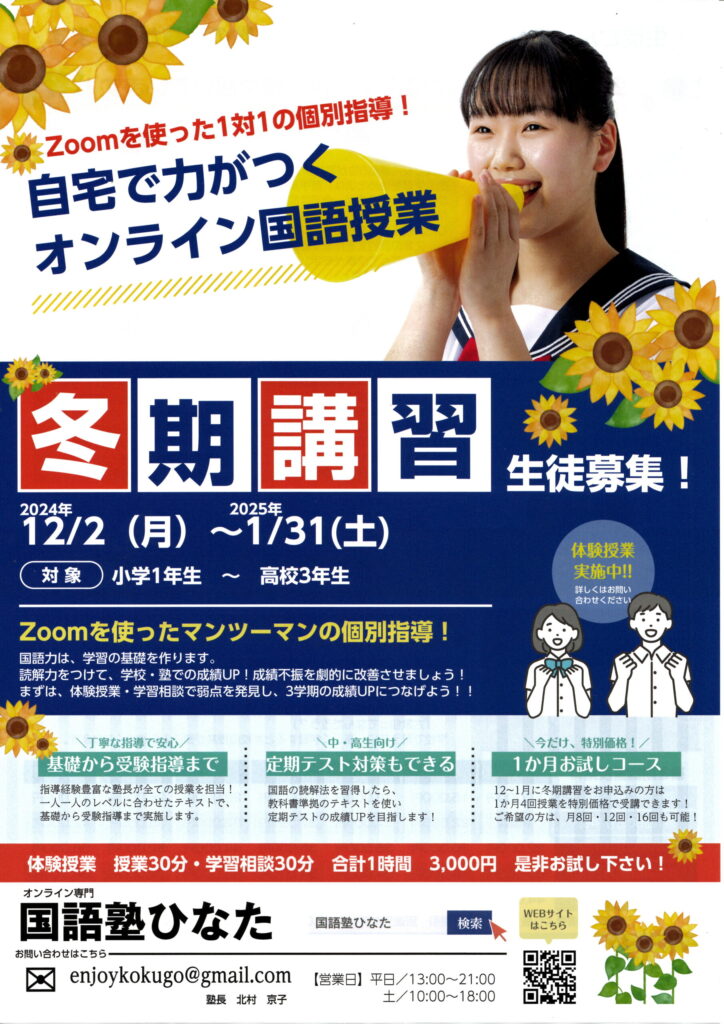 オンライン国語塾ひなた、2025冬期講習開講中!!